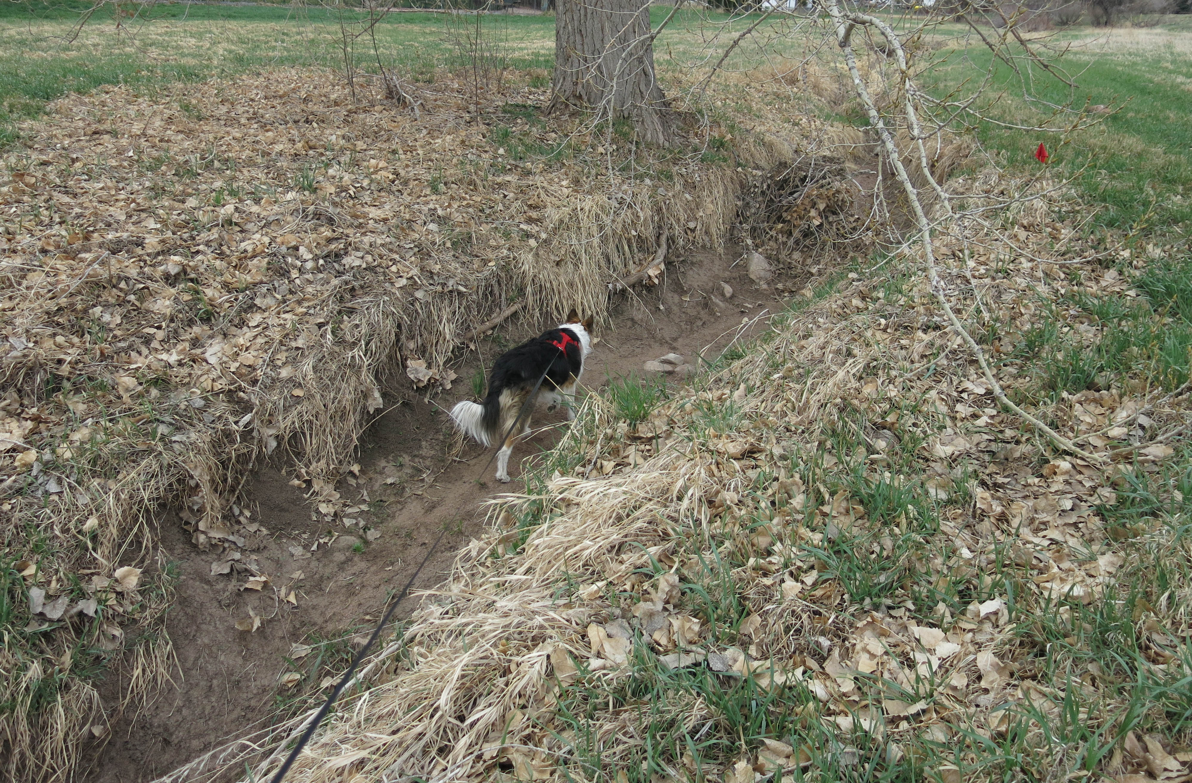 There isn’t any water in the creek, obviously, but when there was, the guy I live with let me go splashing in the water, so long as the water looked and smelled good, which sometimes it doesn’t.