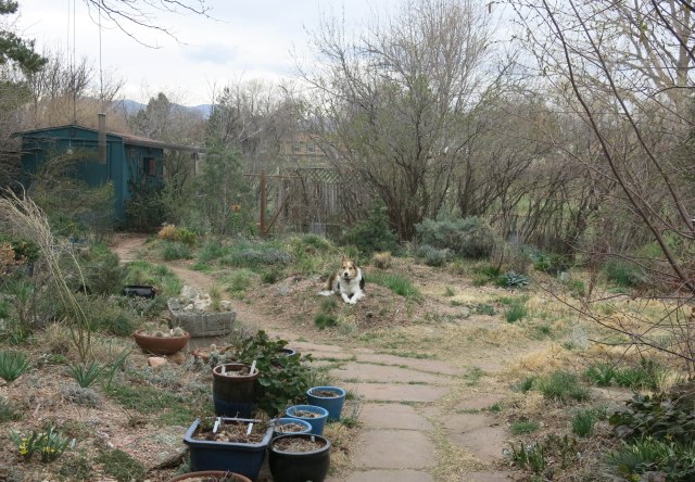 Greetings and salutations, everyone; yes, once again it is I, Mani the purebred border collie, filling in for the guy I live with, and here to bring you the latest news from our garden, and some vole-hunting news, too. You may remember me from such posts as “The Ugly Garden”, among so many, many others.