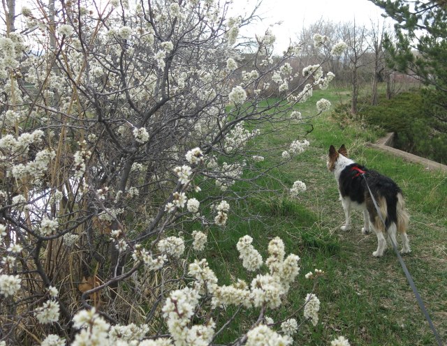 The wild plums are flowering. The guy I live with said that back in the last century they were a sign of spring along the Front Range, but the last few Aprils have been so cold that you can hardly ever smell them. Here they are, along the canal road. I was ready to keep going but the plums needed to have their picture taken. The guy I live with said the plums make a really good jam, but he’s never made jam. Just eaten it. It’s best on toast with lots of butter. So much butter that it gets the toast soggy before you spread the jam on it.