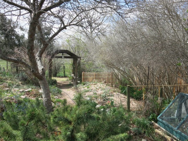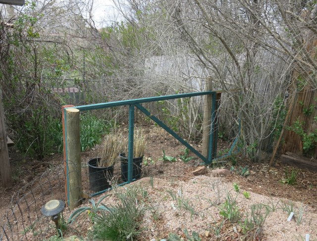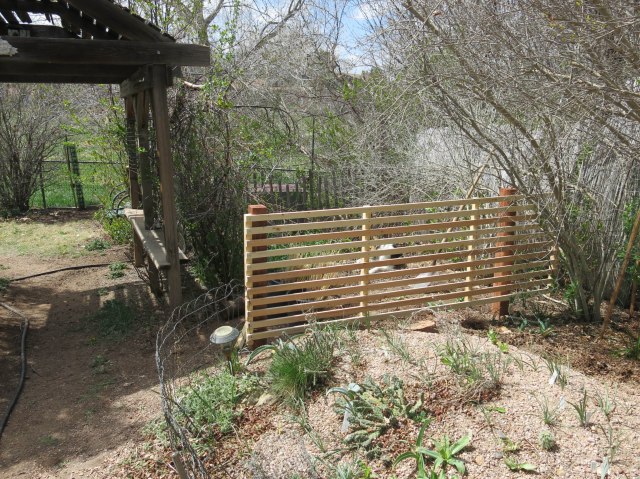 There was a lot of hemming and hawing about the fence after it was put up. Most of the materials were already here so it didn’t cost much money at all, but it was really, really ugly. It was necessary to have a little fence here to mark the end of the sand pile and sort of wall off the little corner in the northwestern part of the garden, but doing it with an ugly fence didn’t seem right.