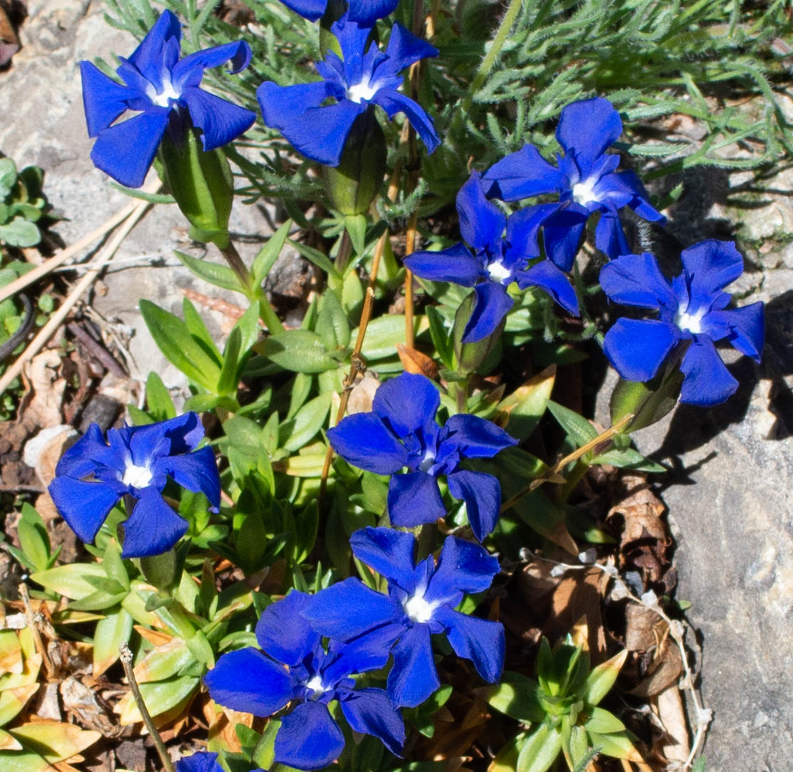 This is Gentiana verna, which was grown from seed, and has been in the trough for many years. It even reseeds into the trough. The plant was bigger but a large section was accidentally pulled out some years ago during an episode of frenzied weeding.