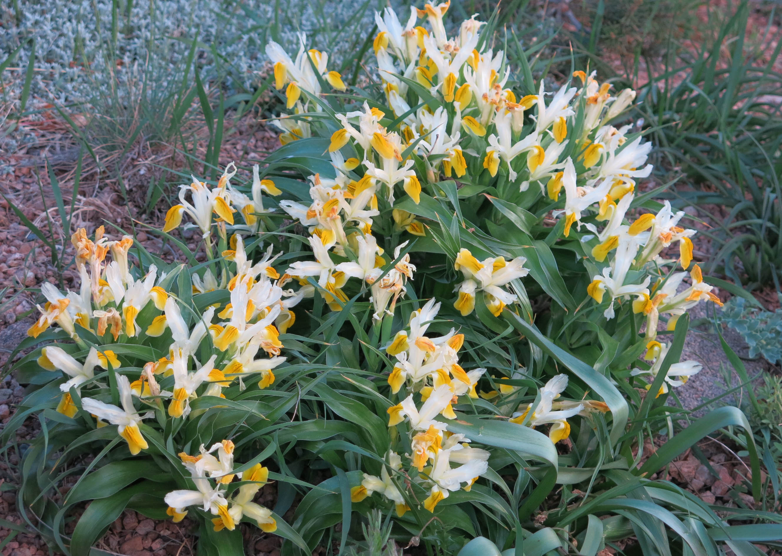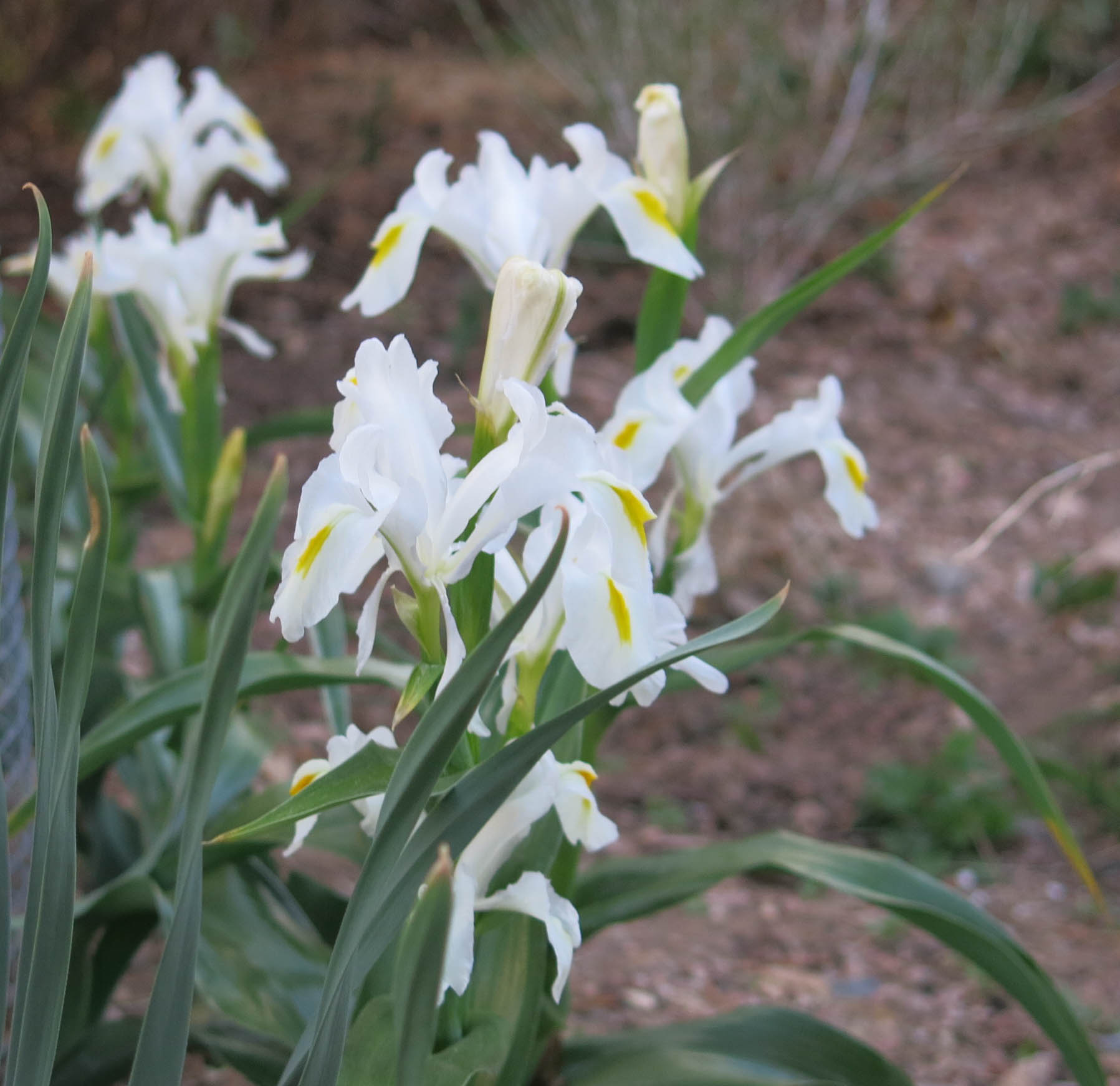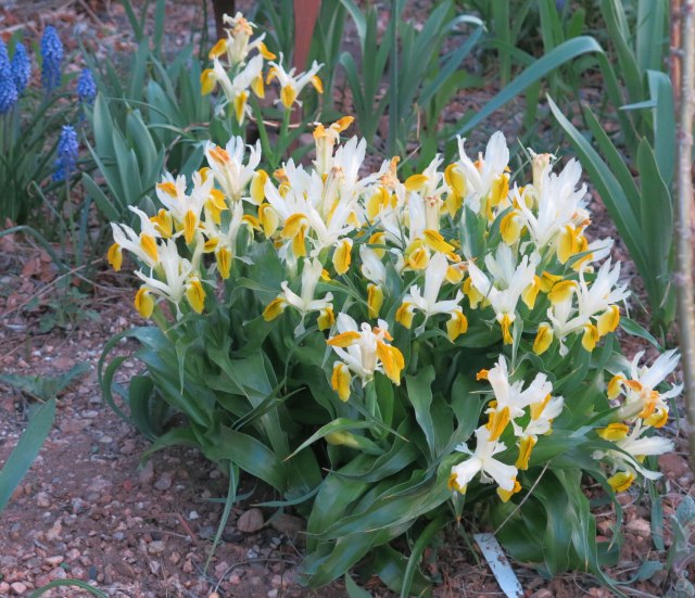 It’s been a variable year, I guess you would say, for the Juno irises. Some flowered last month, some got frozen, and some didn’t flower at all because it got too cold right as the buds were forming. But Iris bucharica, which is one of the easiest, is having a very good year.