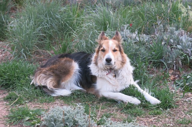 Now, as you may know, we purebred border collies are not allowed to drive cars. This is partly because we never get issued driver’s licenses, but mostly because we can’t see red. Like for stop signs and stop lights. This is what the guy I live with says, anyway. In other words I’m not much into red flowers.