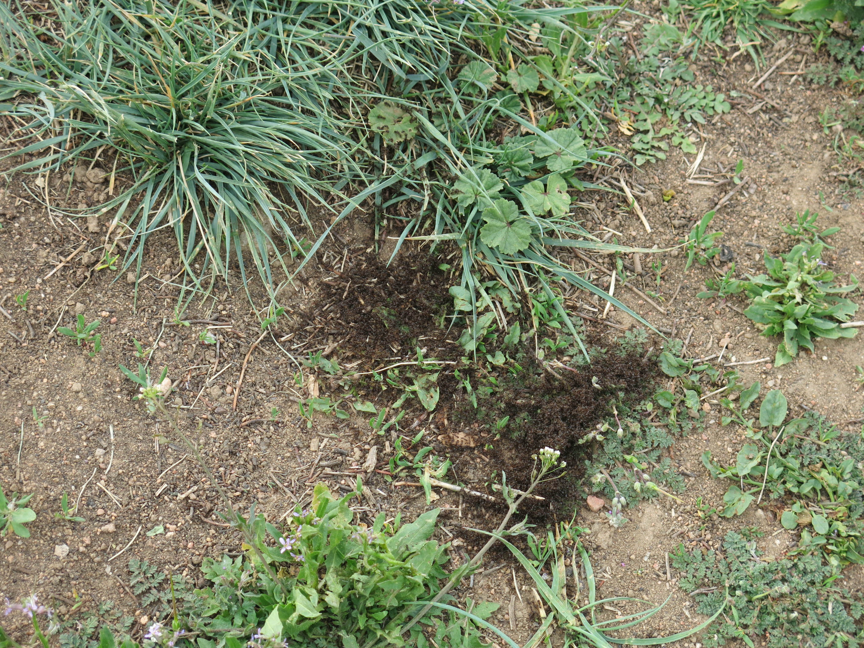 There have been ants swarming, or whatever it is that ants do when they all gather together, on our walks, lately.