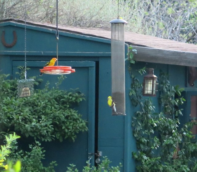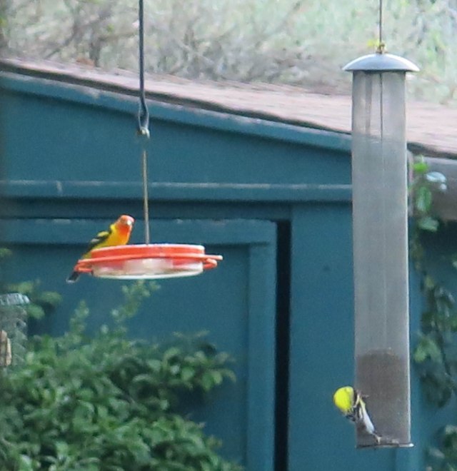 You know, I told the guy I live with it was a western tanager. Or at least not an oriole. I know orioles, because I made a post, “Of Orioles And Rain”, shortly after I arrived here. And they’re here every year, eating grape jelly. But no, he said it was an oriole. So I went along with him because he’s getting really old.