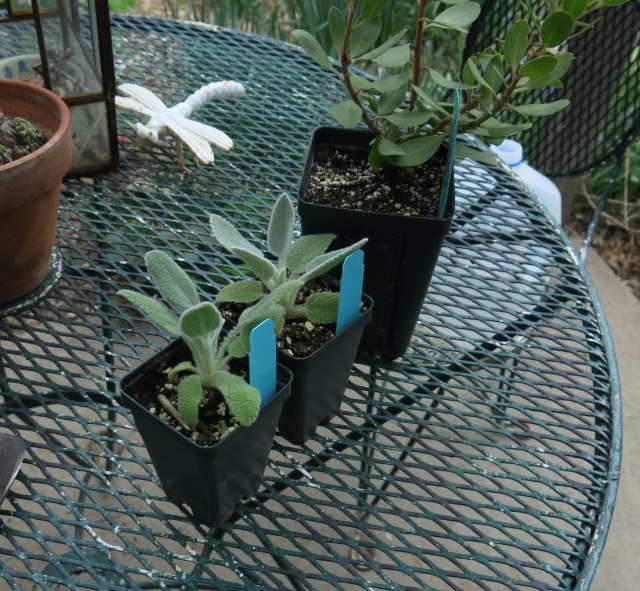 Nice little haul from the plant sale for TGYLW! In the irrational way that gardeners do, I long for a manzanita, whose requirements for dry summers would be impossible to meet here. Those warm-colored branches are so beautiful at every time of year, but especially late fall and winter. They’ll set you off even more elegantly than the new fence when you lie underneath them; looking forward to that characteristic pose in a future post.