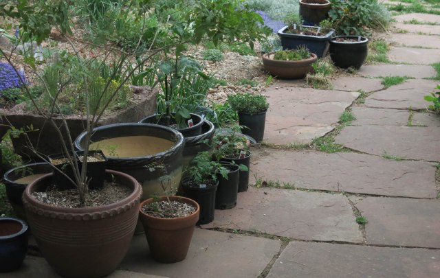 I guess these will be grown in large plastic pots. You can see that one has already been potted and is sitting in the glazed ceramic pot.