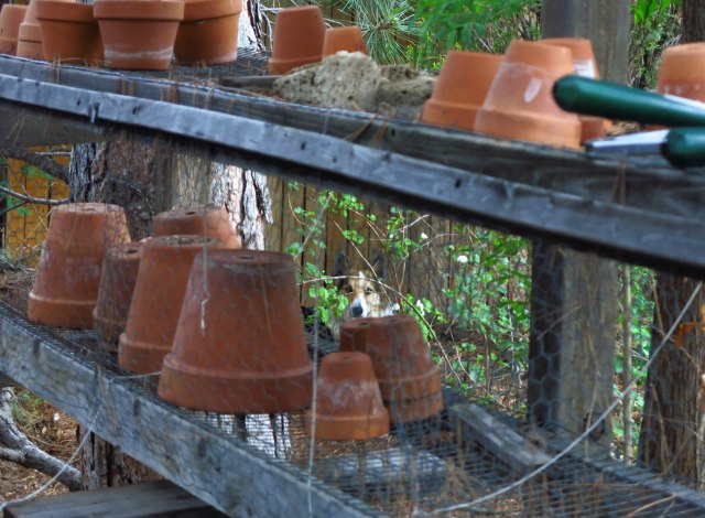 Here I am, Mani, bearing unsolicited advice: the guy you live with might be better off moving spiders and leaving plants alone, given the death rate. He seems almost as addicted to moving plants as he is to collecting, so probably nothing will change. Really like those alliums, which I shall have to give a go again now that I have more attention for the garden. Your alliums are delightful, and I like the sea kale too. We’ve grown that kale in the past because, you know, *sea* right over there (waves arm), so the plant seemed appropriate. Those yellow birdies must provide hours of entertainment for you, Mani. You look awfully handsome walking the dandelion path, and peering in through that great assortment of terracota pots and being striated by light and shade. You’re just a handsome dog, no debate, all good.
