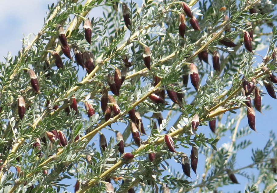 And maybe you remember the quandary surrounding the Caragana microphylla plants. The guy I live with said that the phylla (leaves) seemed excessively micro, and so he moved these plants into a place where they might get a little more water to hydrate those tiny leaves, and planted a couple of C. microphylla ‘Mongolian Silver Spires’, if that’s the right name. The leaves on this one are certainly micro, but not nearly as much so as the ones on ‘Tidy’ which he planted earlier.
