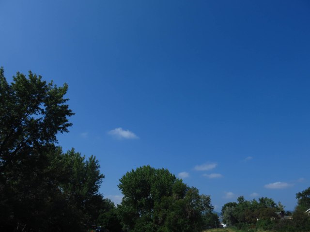I guess this is where the phrase “out of the blue” comes from. There were really bad thunderstorms in the afternoon and evening. We were under a severe thunderstorm watch for hours. Naturally, the guy I live with wasn’t the only one who was agitated. I could hear the thunder.