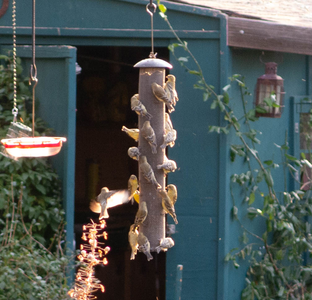 That is a big herd of finches! Those are the little bastards that came into my dining room to eat the sunflowers that I cut and brought it! They made if abundantly clear that I would not cut any more sunflowers ever again.