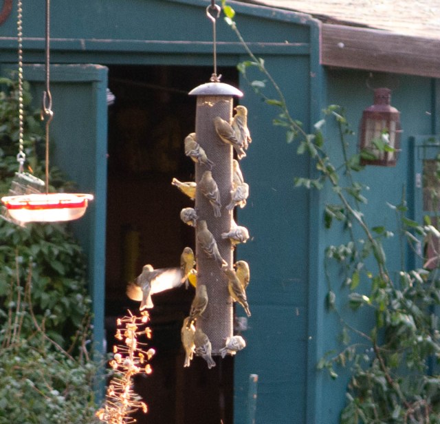 If you didn’t see the picture of all the goldfinches at the feeder, posted on Facebook, here it is.