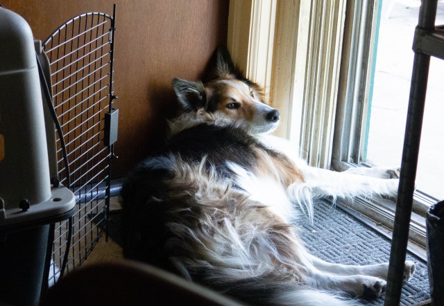 I wondered if he might not benefit from some Rescue Remedy and maybe even a Thundershirt. This has been a very anxious summer for him. He’s a worrywart. (His wife was the opposite; she thought his worrying was stupid, which of course made him a little cross, but he misses hearing that calm voice.) We purebred border collies tend to worry about things, too, and I don’t like thunder and lightning at all, so I’m not really being critical.