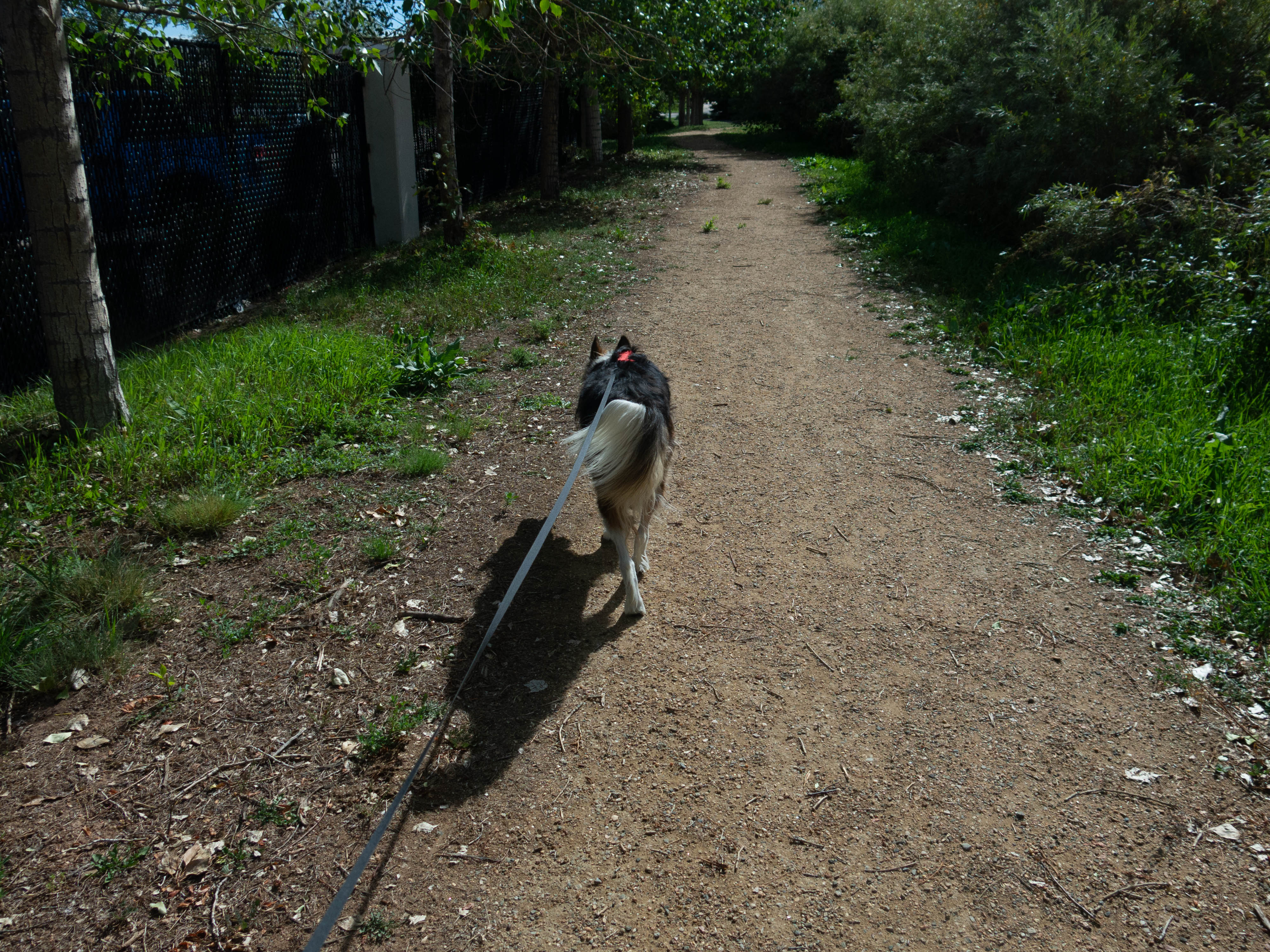 There was sun on my walk this morning. You may have heard that I hurt my leg, my left hind leg, and that I was seriously limping, but it got better. I had to have what I thought was an excessively large amount of “quiet time” for a few days. The guy I live with called my doctor to see if I could go to Day Care this week, and the thought was I should stay home, and “play it safe”, but the whole time he was talking on the phone I was chasing squirrels in the garden, and he felt very weird about me not going, and his inability to make decisions, but he said what I felt about things was more important than him trying to make decisions, and that me chasing squirrels and running up and down and back and forth was a good sign, so he called again the next day, and it was decided that I could go to Day Care, which I did. My leg is fine now.