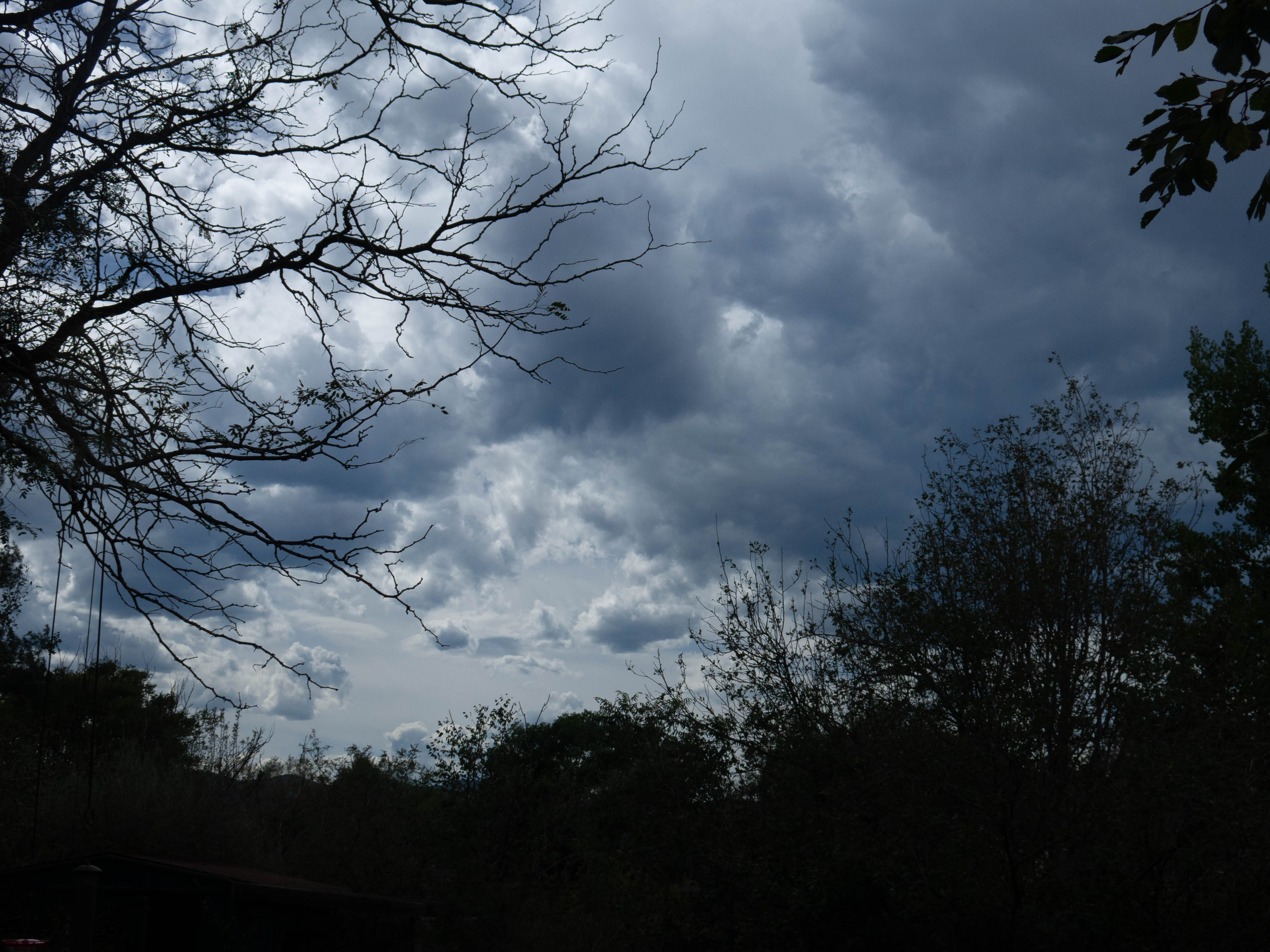 That *is* a gloomy sky, and mystifying about the lack of wind. This time of year is oppressively still here, but we’re a humid climate — and in a week or two the dry air of fall will move in and make us forget about August. Hope something like that will happen for you; it cuts way down on gnats.