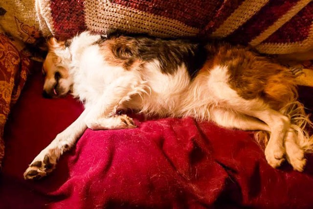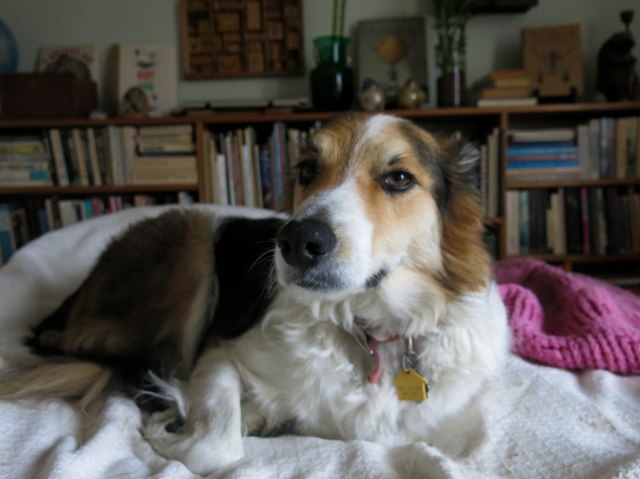 I guess it includes me. The guy I live with hasn’t really said if giving purebred border collies turkey with all the trimmings was standard operating procedure in the past. I like to think that it was. I have had turkey before. One thing we’ve started doing is being on the couch together more. The guy I live with sits at one end and reads, with his new reading glasses, and I snuggle up next to him. It really is quite excellent. Maybe some time he will read me a story. Nothing scary or anything like that.