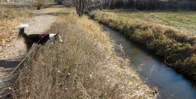 Last week it felt like the water in the canal might stop flowing within a few days, so we looked for the muskrat a lot. Sometimes we saw it, and sometimes we didn’t. Here I am doing some serious looking.