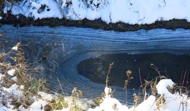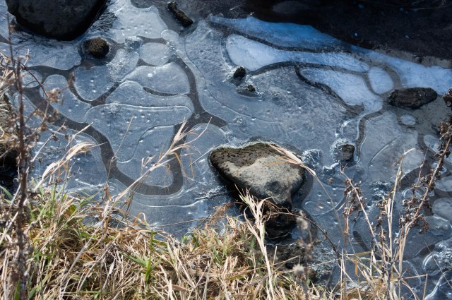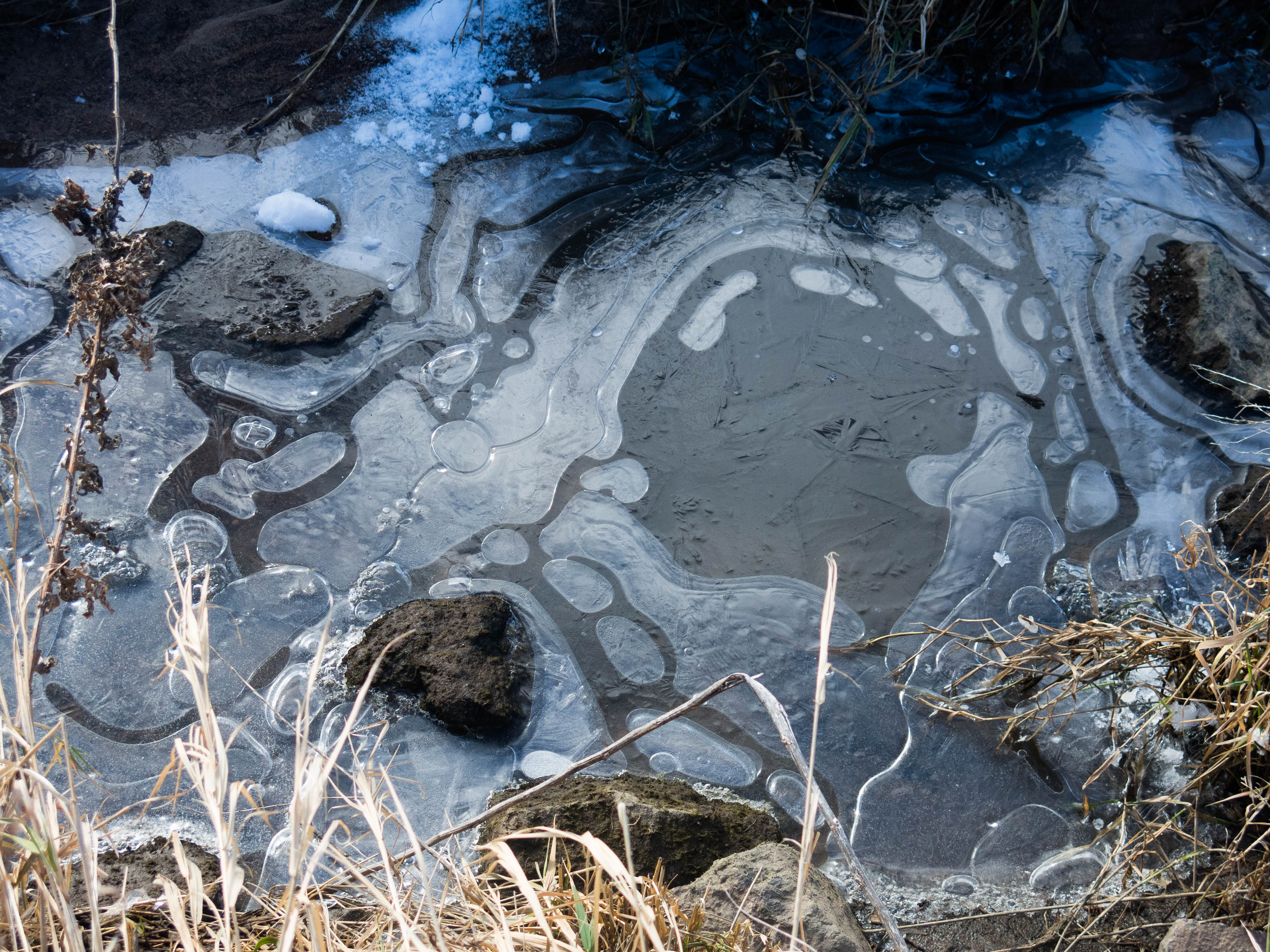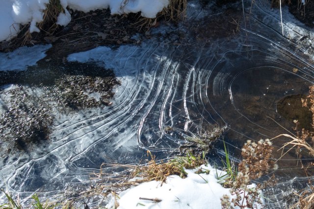 There was some water left, in pools here and there. As the water level went down, it began to freeze, and the ice made patterns.