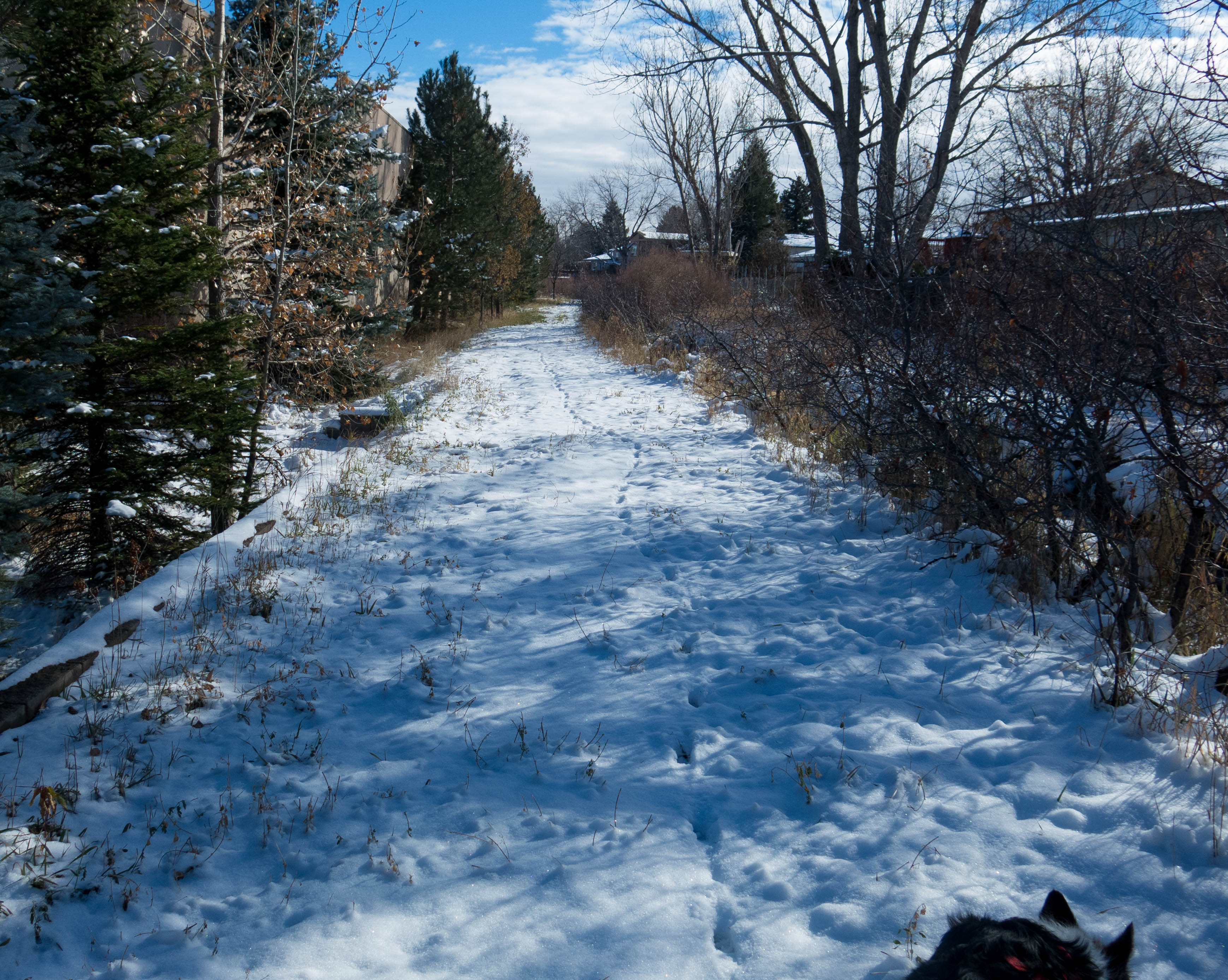 Then it snowed, and the water level in the canal dropped quite a bit. The guy I live with said that the muskrat would spend the winter either in its cozy canal-bank home, all lined with dry grass, and a tiny bed, a tiny television; maybe even wi-fi. Or it would go to a place called “Florida”. So we won’t see the muskrat again until next spring, when the water begins to flow. (I say “muskrat” but we think there are two of them.)