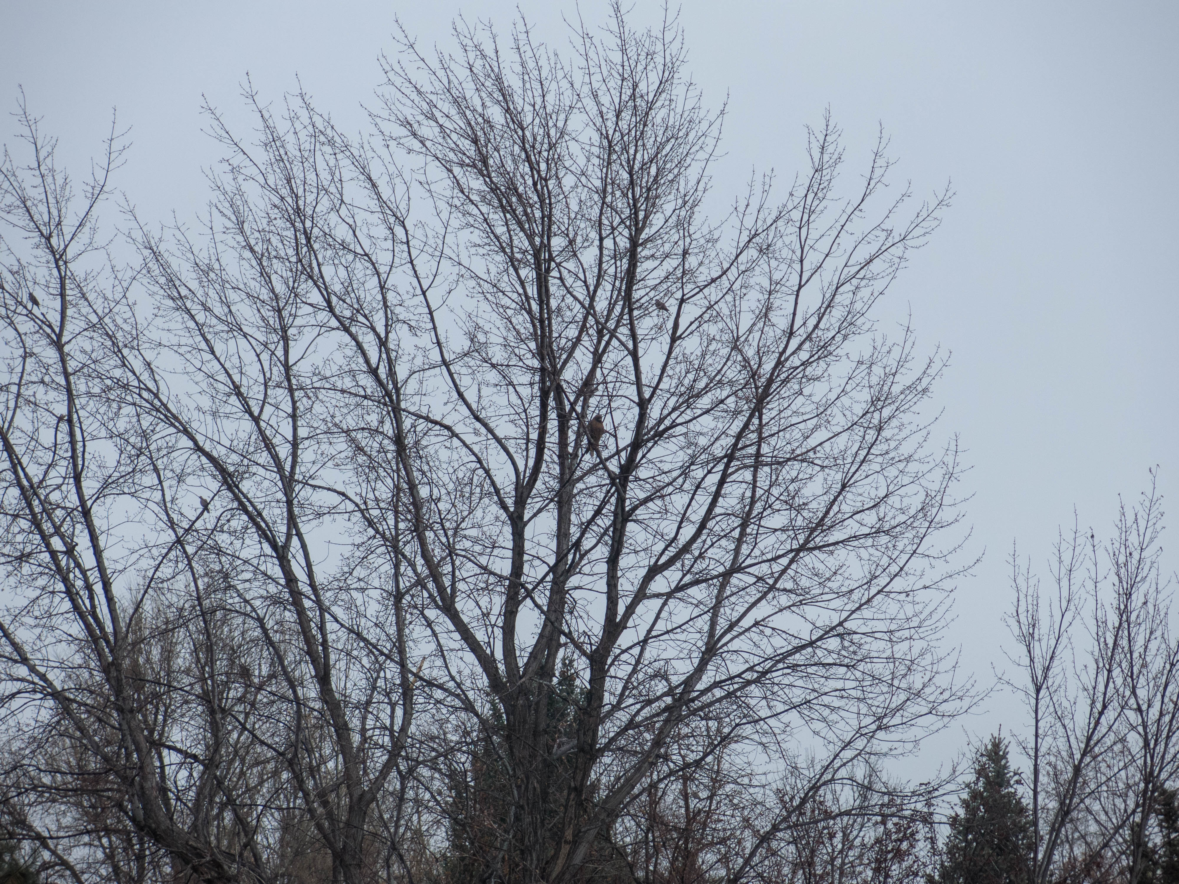 I’ve seen big hawks in the trees every single day. Sometimes more than one hawk. They sort of screech at each other. I guess they’re red-tailed hawks.