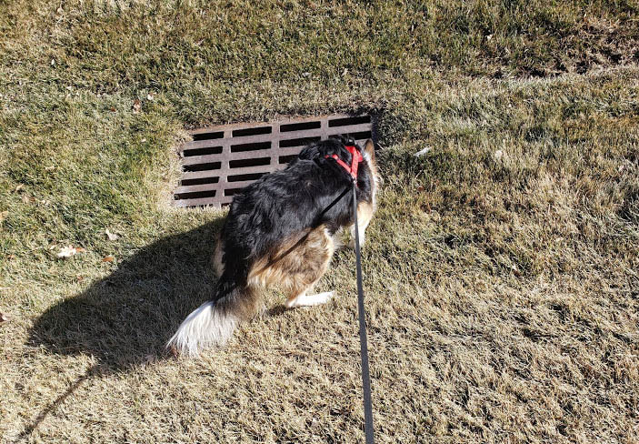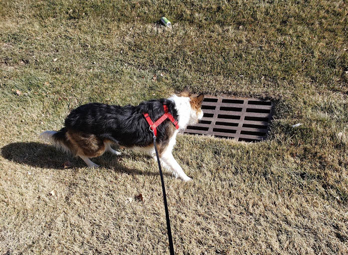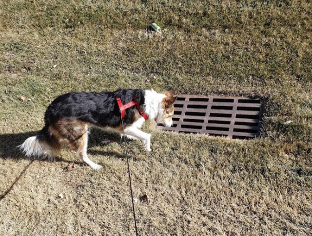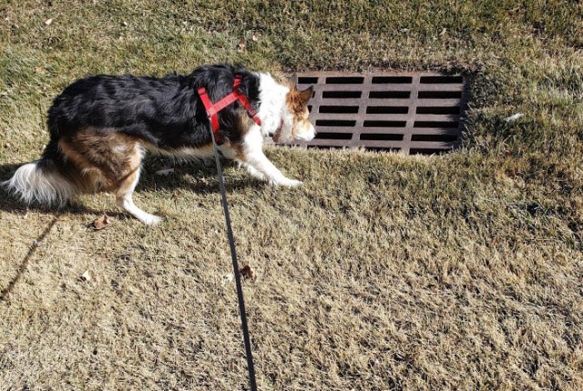 I don’t blame you for being cautious of that drain. I’ve avoided walking on them since I was a little girl. Nothing bad ever happened, but I was always afraid I’d fall through. Oh… maybe I shouldn’t have mentioned that. But, it’s good for a pure bred Border collie to stay off them, their feet are usually quite tiny and might slip through. Oh… I shouldn’t have added that either.