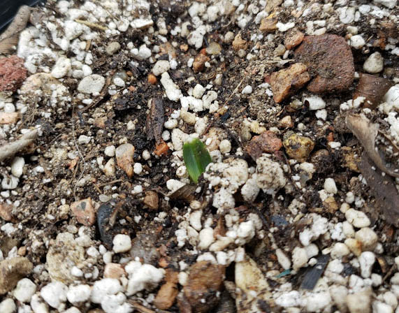 So, a number of the pots were brought indoors. The idea here, which was explained to me even though I admit I wasn’t hugely interested, is that it was important to get these bulbs to grow, since they were planted a bit late. The soil in the pots thawed, and things began to happen.