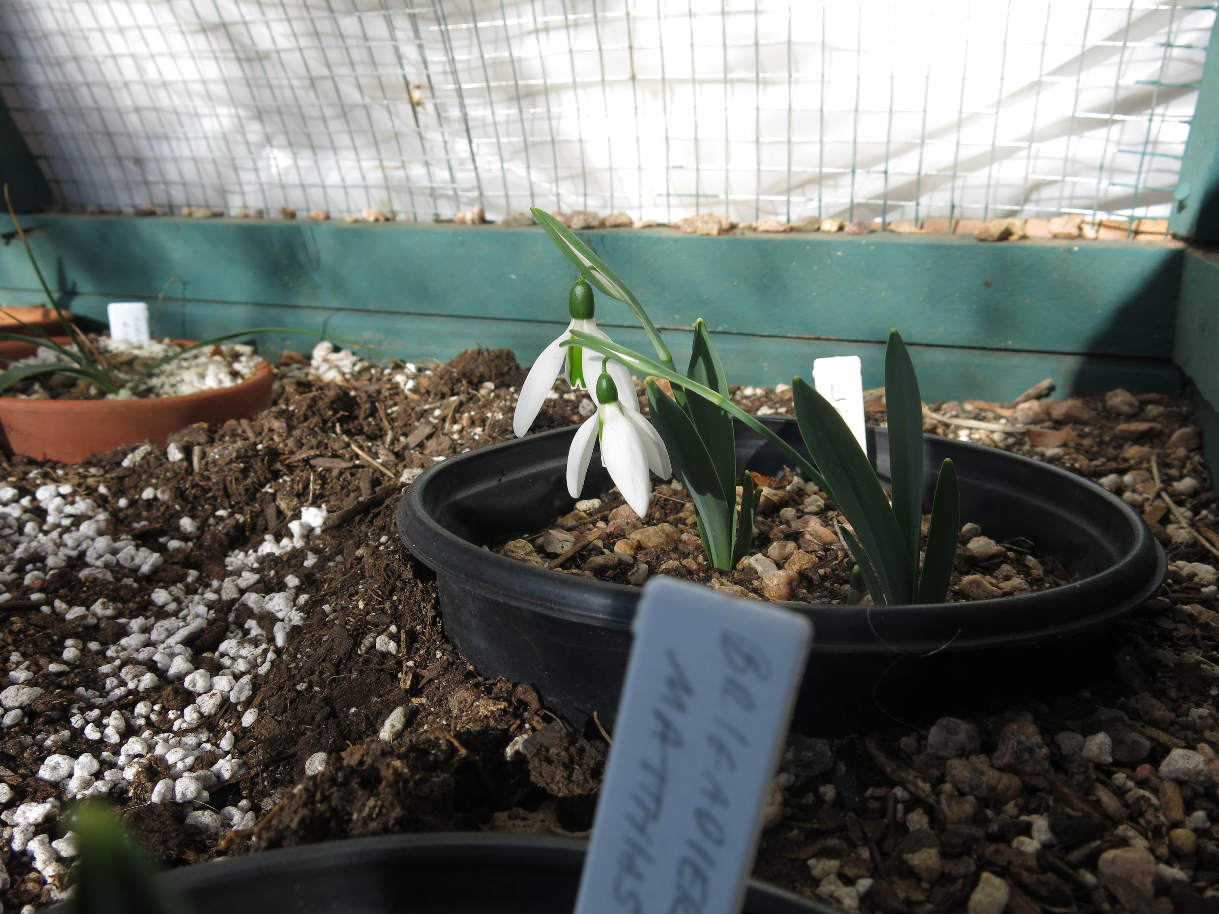 Instead of planting snowdrops out in the garden, they’re going to be planted in pots and grown in the upstairs bedroom their first year, so that they make good growth, and then next year, some time in August, maybe, the bulbs will be planted in pots (smaller pots) in the frames, until they begin to increase.
