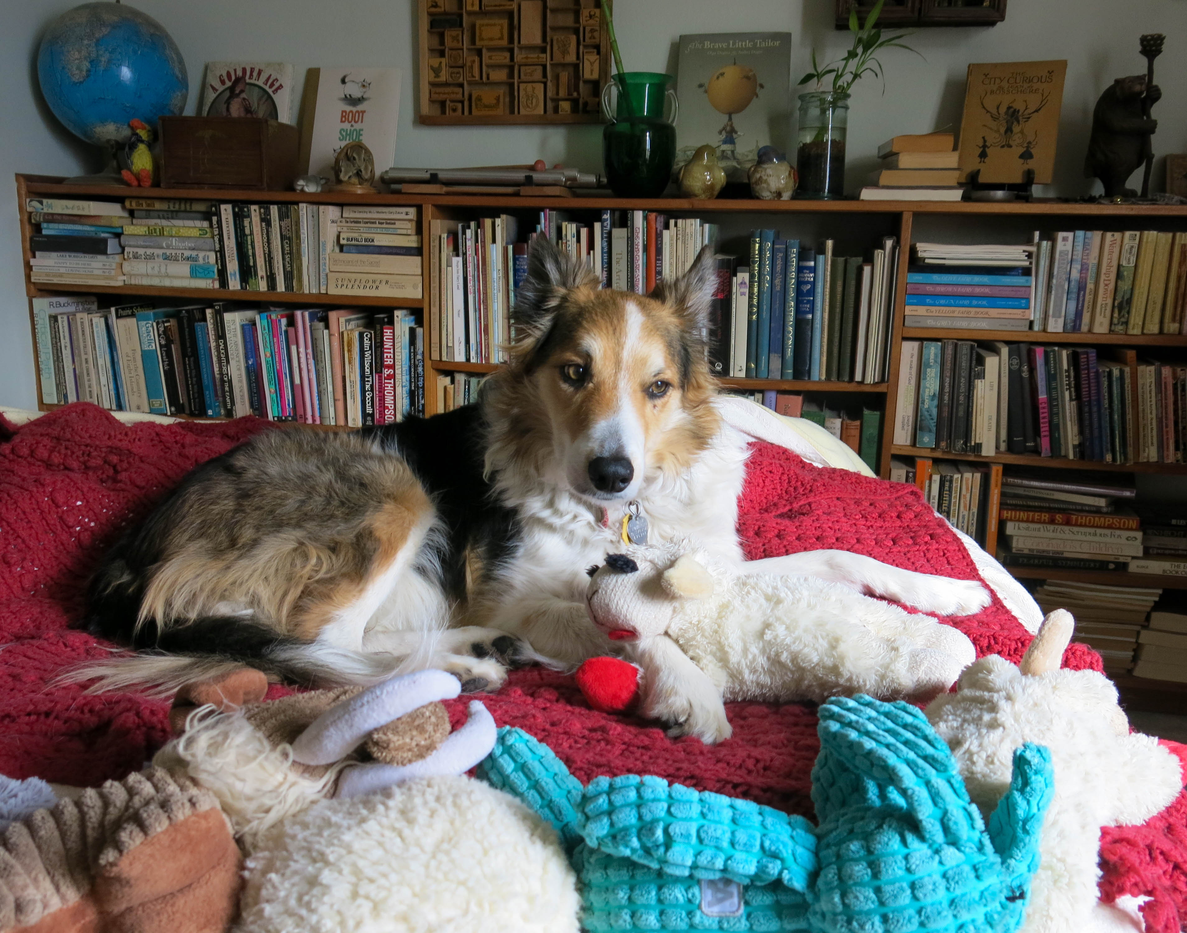 This was all so fascinating I hardly know where to begin. You have the kind of house where a person could roam for hours, examining books and little other things here and there. I see there are some great children’s books which are a wonderful escape for any right-thinking adult and could be easily read to a dog. I recommend “Miss Jaster’s Garden” if purchases of the type are still being made. I have ashes here too and have melted some with glass. I am just finishing a mosaic of the garden in honor of the departed. Do you ever grin like a jolly bird, Mani? I can’t recall seeing your grin. May we have a grin picture someday?
