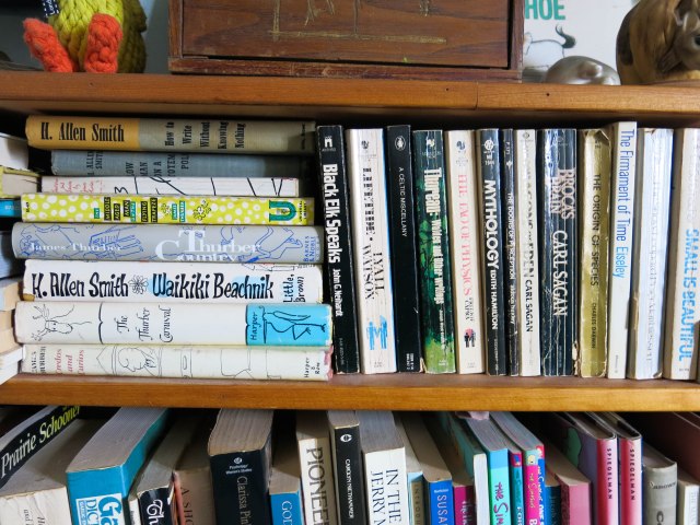 Most of the books were hers. He says H. Allen Smith was a really funny writer.