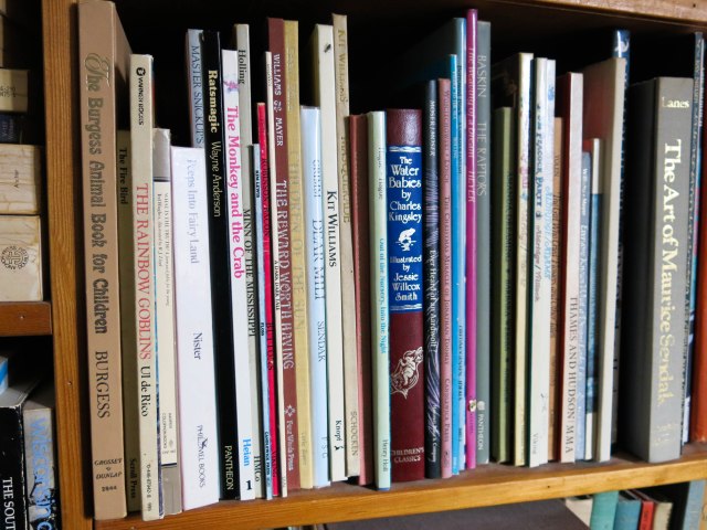 Thanks. The guy I live with called his sister to see if she knew about these books. No. he has two adorable grandnieces who might enjoy such things. The Saturdays maybe when they get older. The guy I live with’s grandfather did a lot of watercolors, and oil paintings too. After the guy I live with’s mom died, his sister and her husband found zillions of things no one had ever seen, including a journal of the time his grandfather spent in New Guinea, in command of the 54th Evacuation Hospital (also, later, in Manila). Best not to try to imagine the things he witnessed. But anyway in the journal were also drawings. Possible Roadshow material. (Entry, “January 6, 1945, we land at Lingayen Gulf”.) His nephew has that journal. The guy I live with has been talking about moving. Yes, I know. Talk about traumatic.
