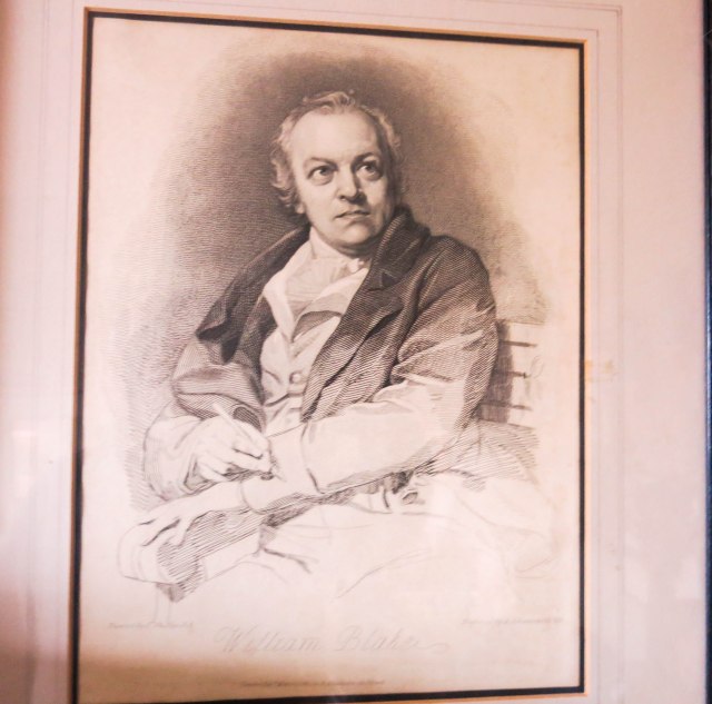 There’s an engraving of William Blake on the wall, done when he was still alive. The guy I live with said, though, that this was like a “second state”, and not the original first issue. But still, he likes it.