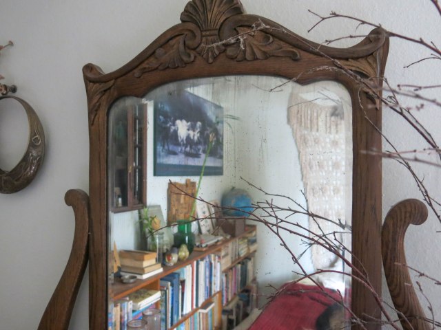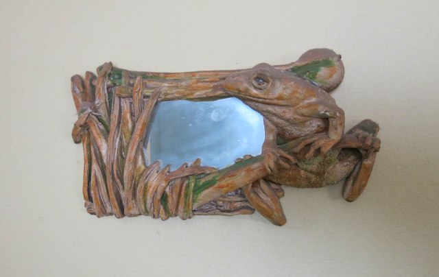 I know most of the downstairs, especially the studio, has been shown before, but I think not this funny little frog mirror. The guy I live with’s wife got it from her mom.