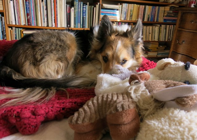 I have an mostly-unstuffed Lamb Chop and a regular one. It’s fun to remove the stuffing. The snow was okay today but it was also, very unusually for here, a bit windy. Naturally the guy I live with had something to say about almost the one time it was windy, and it had to be cold, too.