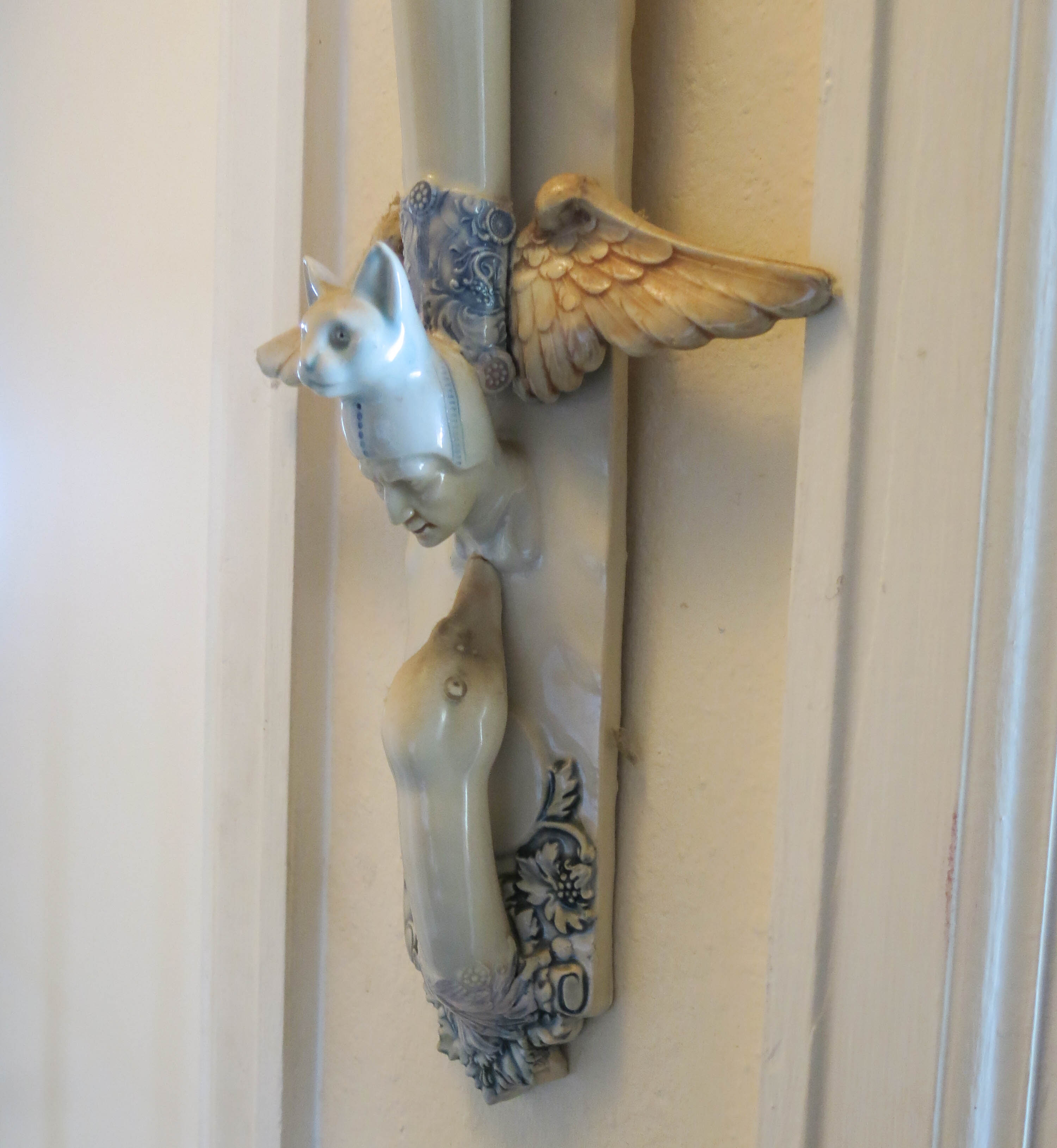 It’s a nightjar, really. Related to whip-poor-wills. People used to think they drank goat’s milk, which is unusual, to say the least. I guess it’s a mink or ermine or something; Lomonosov porcelain. There are a few of them here. Well, the guy I live with dusts stuff. There’s also a bunch of I think Depression Glass, which his wife collected, and he very, oh so very, washes them every year right before Christmas so that they glitter when we sit in the living room together. Hard to explain, maybe. When he was seeing a therapist she said it was now his house, but he strongly feels that it’s his wife’s house. She didn’t work and spent twenty-four years making this house the way it is now. It’s not like a shrine, but, just, you know, her house, if that makes sense. Which is why it’s hard when he thinks about moving.