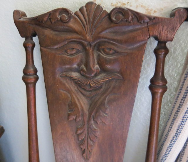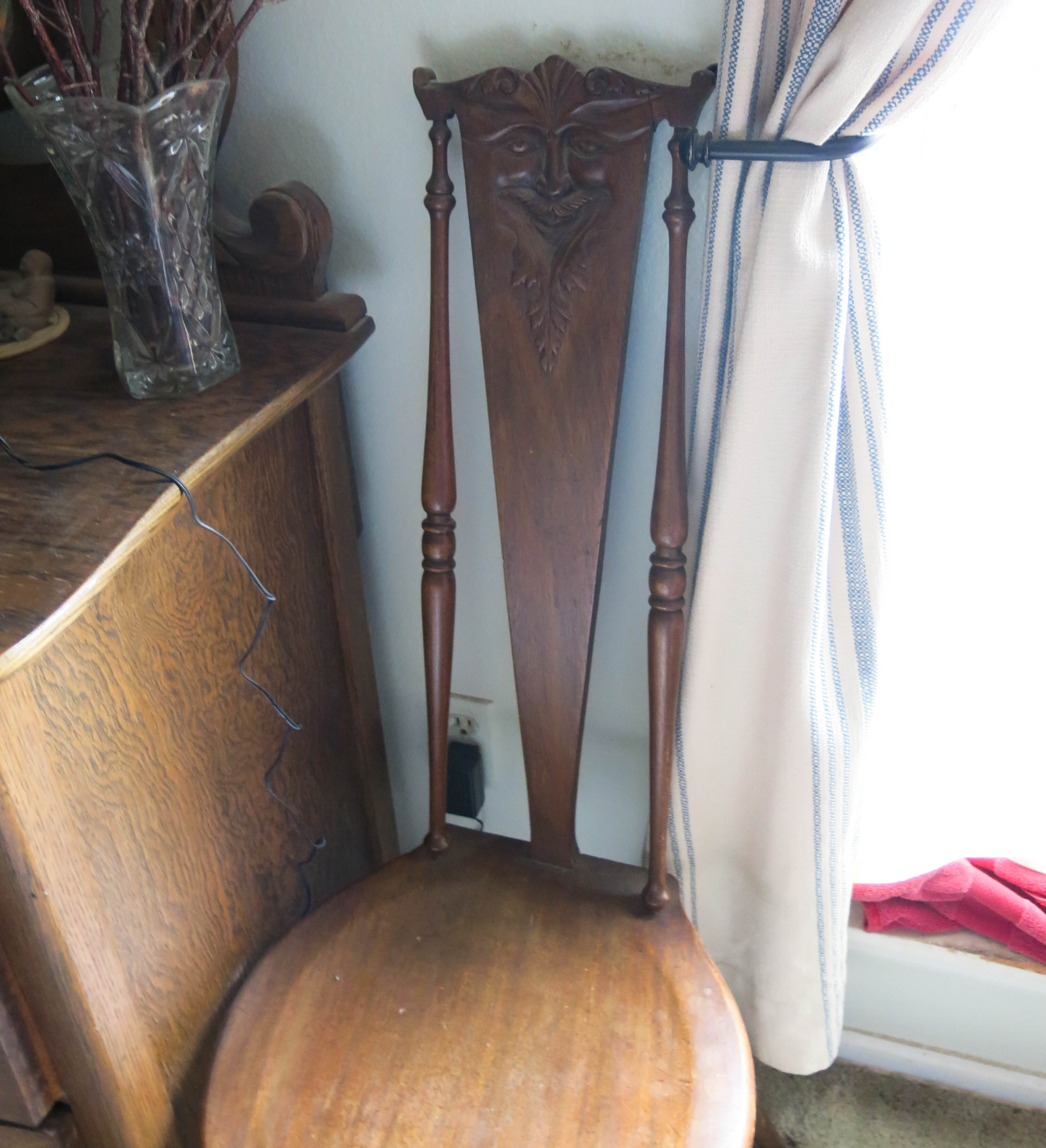 Yes, it’s a vase for holding flowers, but an odd one. The guy I live with says that probably his wife’s mom found it somewhere. It looks Russian to him. He broke off one of the wings, accidentally. The chair may have been made by his wife’s grandfather. The guy I live with, who is obviously not very coordinated, broke off a piece of that, too. So no Roadshow. There’s always some glue handy, in the garage, just in case.