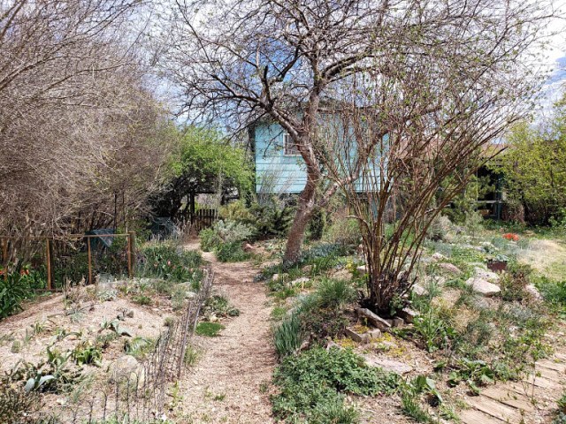 And here are a couple of pictures of the garden, too, which show how dry it is right now. There won’t be enough snow to help with that, and the cold at night also won’t do any good, either. The guy I live with constantly wonders why it can’t rain in the spring, like it used to.