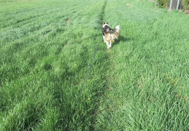 Eventually I got to go home. It was a long, long walk today. I’ll leave you with a picture of me, going home as usual, but I think you can see some of my hair being blown back, which shows how windy it was. I still had a good day, sailing along in the sea of brome.
