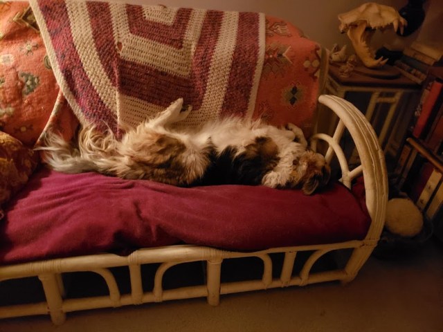 I love my couch, as maybe you can tell. I’ve already told the story of the couch, more than once, but I really do love it. All the purebred border collies who have lived here have loved the couch.