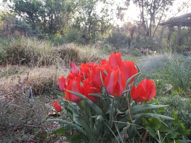 The rare tulip, Tulipa butkovii, still looks good. This picture was taken with the phone, as the sun was going down.