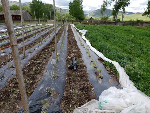 They have vegetable gardens, too. There’s a hawk, lunching on a rabbit, in this picture. Just at the far end of the roll of weed barrier, there.