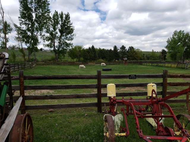 He and his friend went to the Chatfield Arboretum the other day, because she wanted to look at the big willow sculpture (called “One Fell Swoop”), and he wanted to go with her. (And also because, in a not totally indirect way, a visit there four years ago caused him to be open to the possibility of meeting someone. I can tell more of the story later.) The arboretum isn’t very far away from here. It’s on the site of an old farm, with lots of farm buildings, farm implements, and gardens.