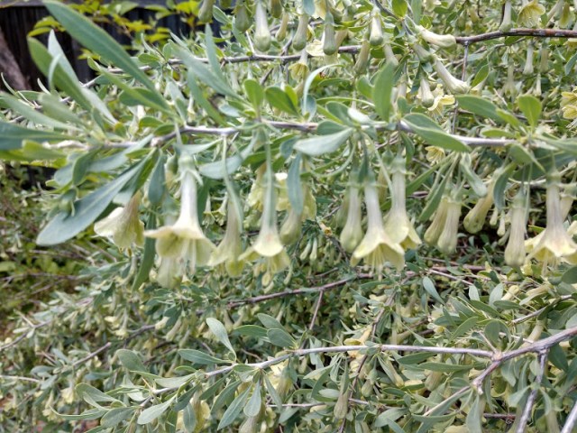 The wolfberry, Lycium pallidum, is flowering. This was taken with the phone, like all the other pictures except for the gladiolus and the hens and chicks picture below this one. The guy I live with hasn’t figured out how to get the best focus.