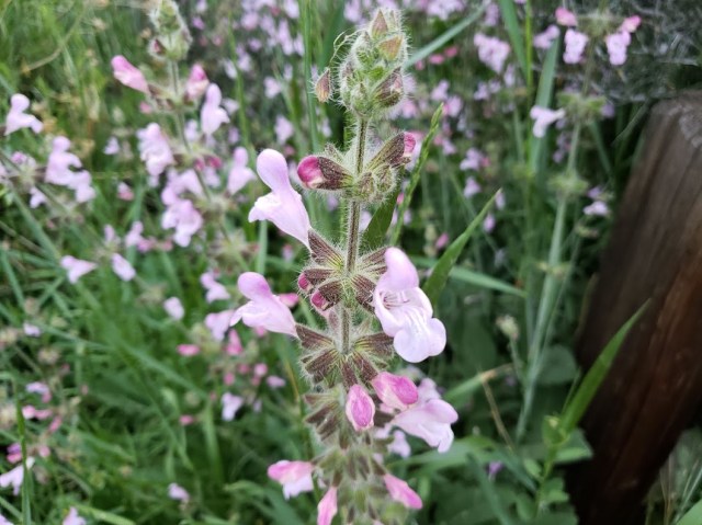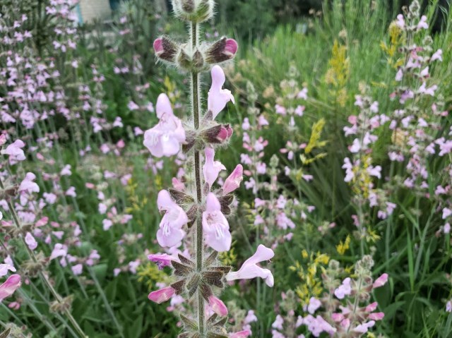 There are a few plants of Salvia recognita in the front yard. They’re pinker than the phone pictures show.