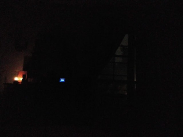 I really like the bedroom. It’s not very big, but it is super cozy. It wasn’t built as the master bedroom, which is next door, but was like a guest bedroom or something. That’s my internet radio glowing there, which I probably showed before, but I like the combination of the candle and internet radio. He bought the radio especially for me, to listen to when he goes to the store, because I don’t go to the store, and someone has to. The sound is good. I like it a lot. I also have a night light which you can’t see; it glows kind of softly after the candle is blown out.