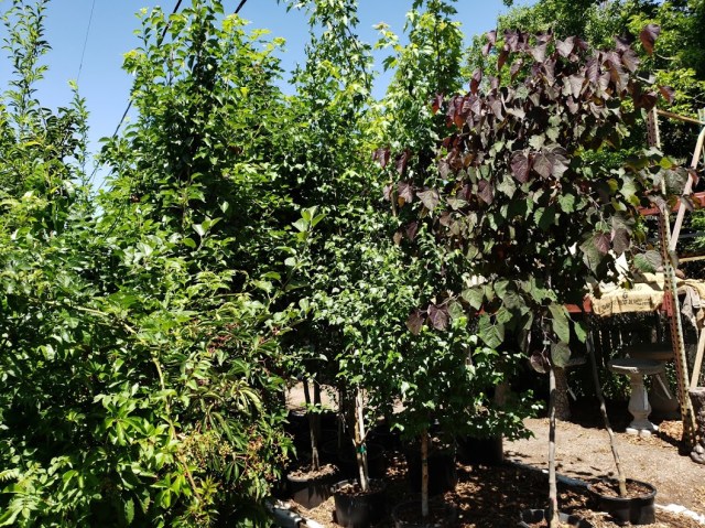 That’s a ‘Forest Pansy’ redbud, with the purple leaves. The guy I live with told his friend they should get it for her garden, so maybe they will, later. Her garden is way different from his and he wants to plant stuff like rhododendrons in her garden. There were some here at one time but he gave them away, because visitors spent most of the time looking at them instead of the rest of the garden.