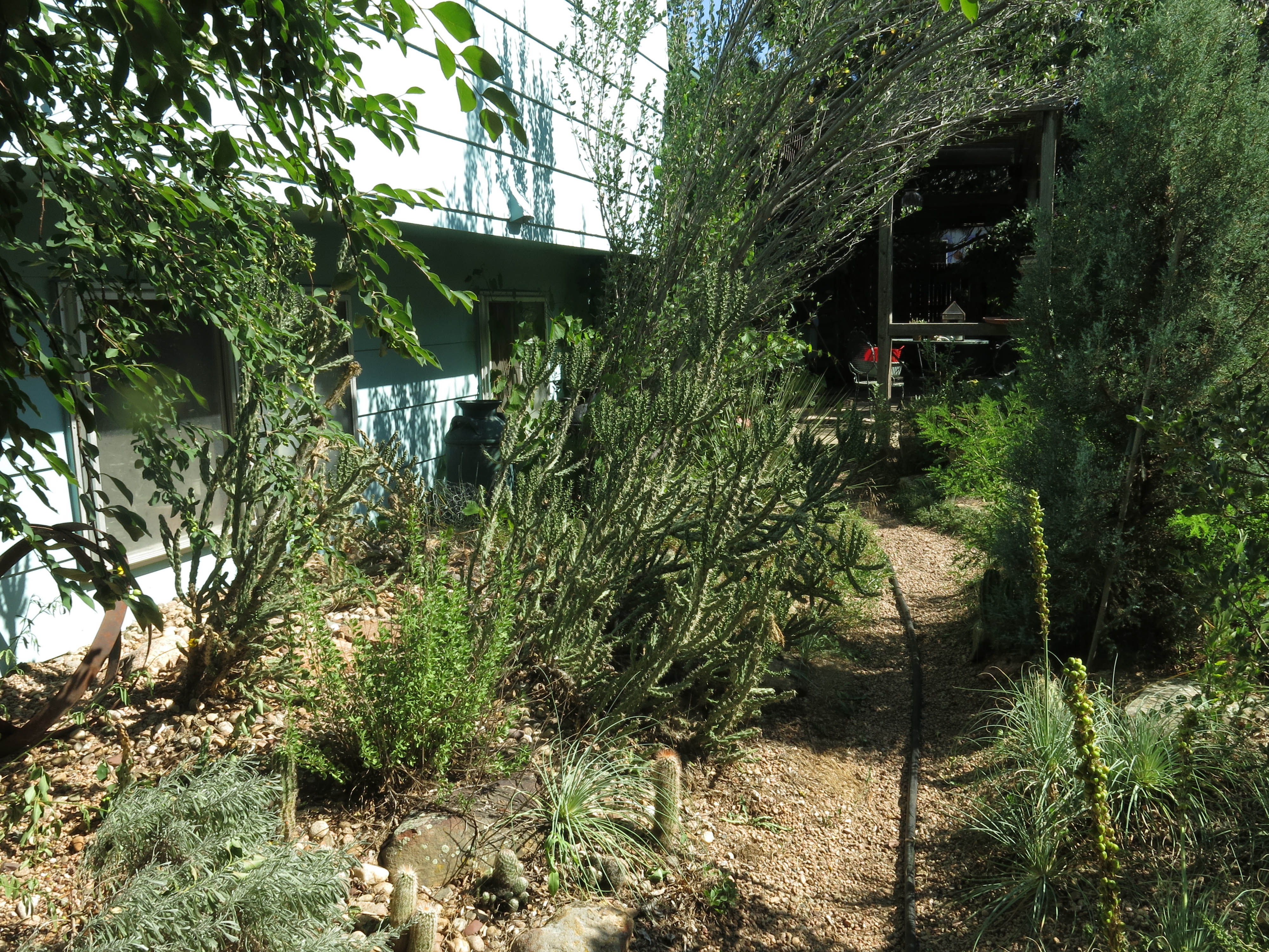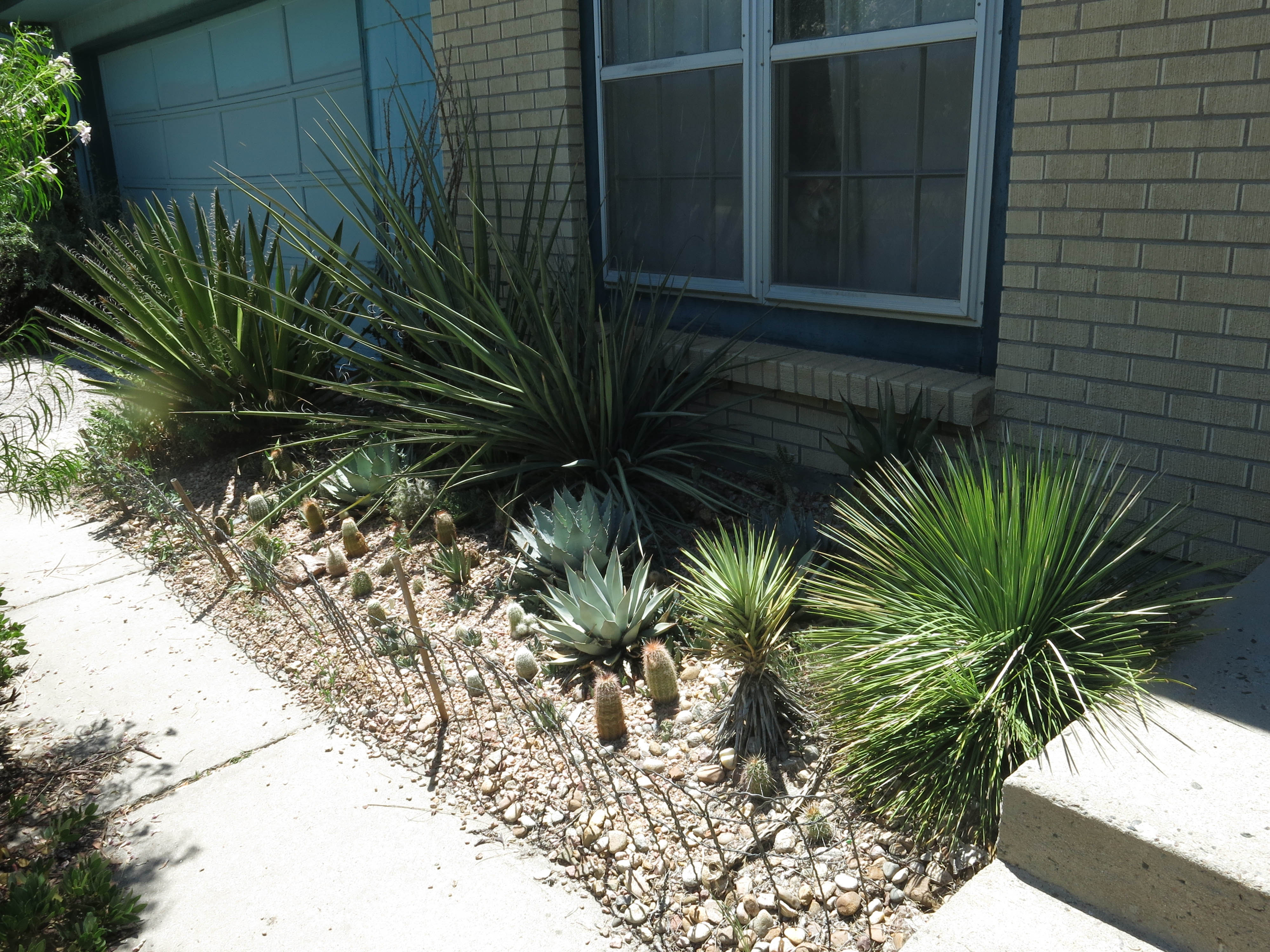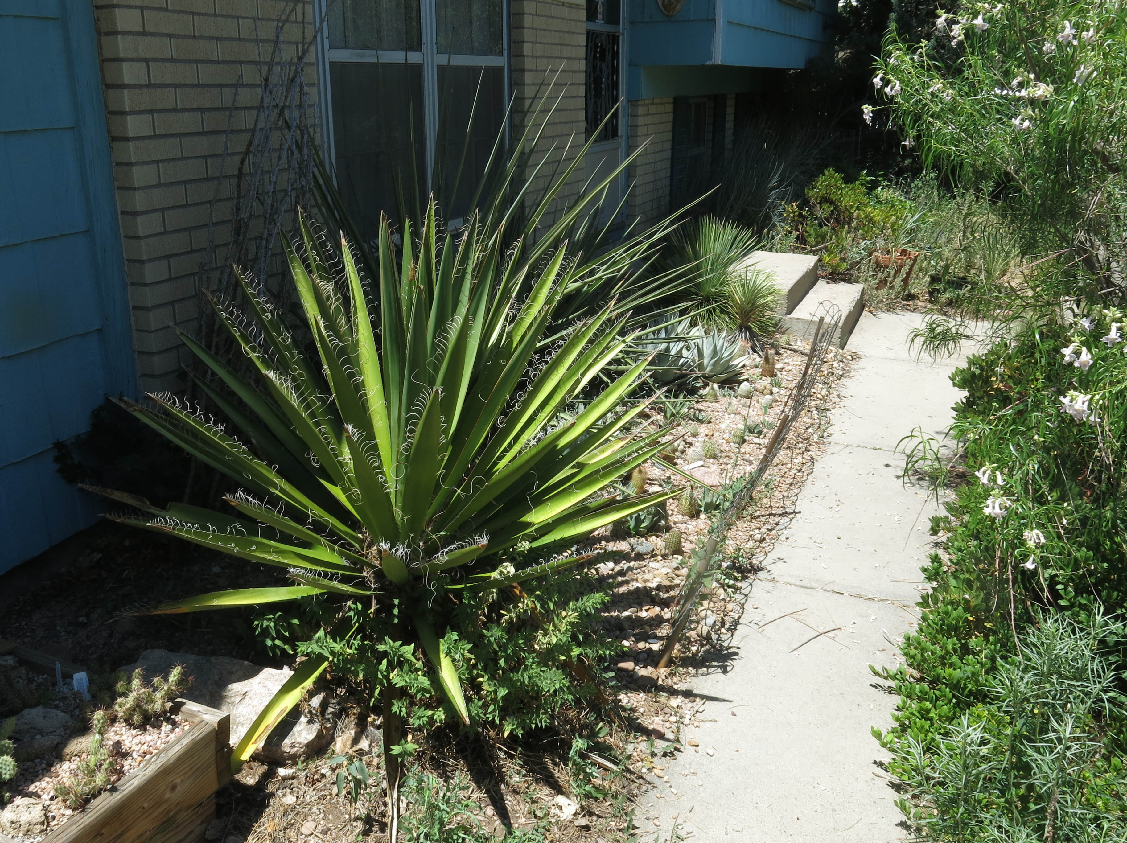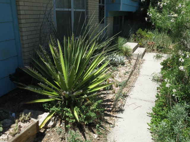 Here’s a backwards picture of the first picture. You can’t see me in the window. He didn’t know the Yucca faxoniana and torreyi (behind it) would get so huge. I mean he thought they would die.