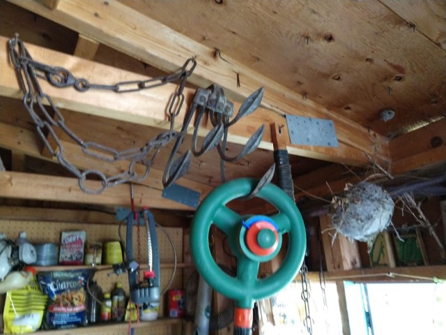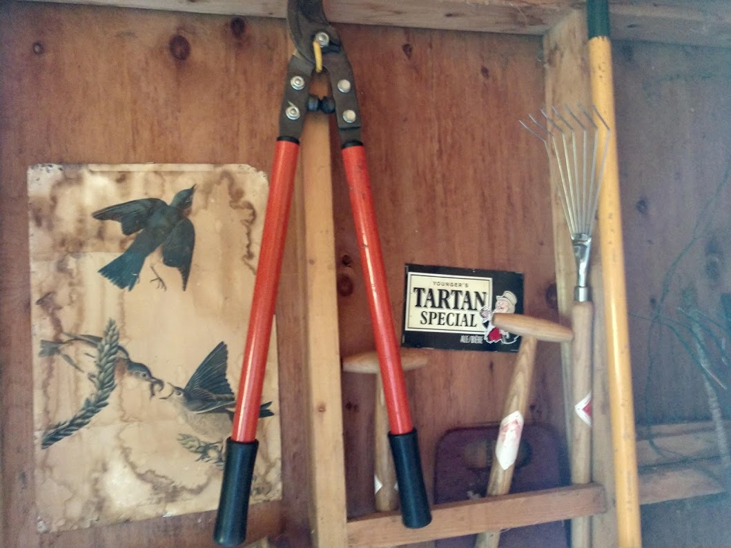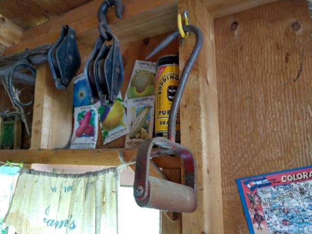 I’m going to show some pictures of the inside of the shed, which the guy I live with built with his wife. She built all the shelves and things, and hung all the decorations and old farm equipment. Just to break up what I’m going to say here, since, as I think you can tell, this is going to be another post with serious things in it. Not all of these pictures are in total focus.