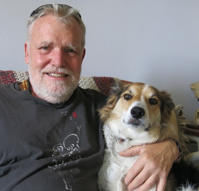 Dogs and I remain astonished with kiddies at Dog Park who run straight up to us. Not polite and downright scary, although we can understand their delight when spotting our two. You can tell the Good, Well-Brought-Up kids because they ask before approaching. You must understand, though, Mani, as a super attractive and excellent pure-bred border collie, you have to bear the burden of popularity. No matter how much the guy you live with grumbles at the state of the garden, I still find it fascinating to look at, even now, deep into its dry season. Perhaps I hang around the native plant people a bit much. One thing I definitely do not hang around is, yuck, spiders. Bird fluttering is perfectly posed to showcase in front of the silver plant. Best photo of you, Mani, is the one in which you lurk around the edge of the gravel garden. looking piquant, an excellent look for you. In his own way, the guy looks pretty piquant in the duo portrait photo.