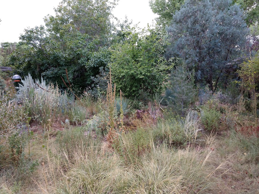 We do have a tendency to show pictures where you can’t actually see what we’re trying to show, but, well, that blurry part straight ahead, in this picture, is the gravel garden. A pile of gravel. Behind the mullein.