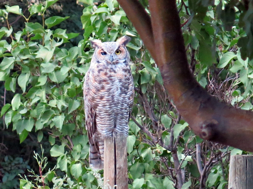 Two distinguished owls, but definitely 2 different ones. The new roof looks good – the joys of home steward ship. The pictures of the garden, with dog, are always welcome. We have had .11 inches since mid August, here more or less on the east coast, and things are crispy (and not as well evolved to deal with it!). Perhaps next week, now that more fall temperatures seem to have arrived.